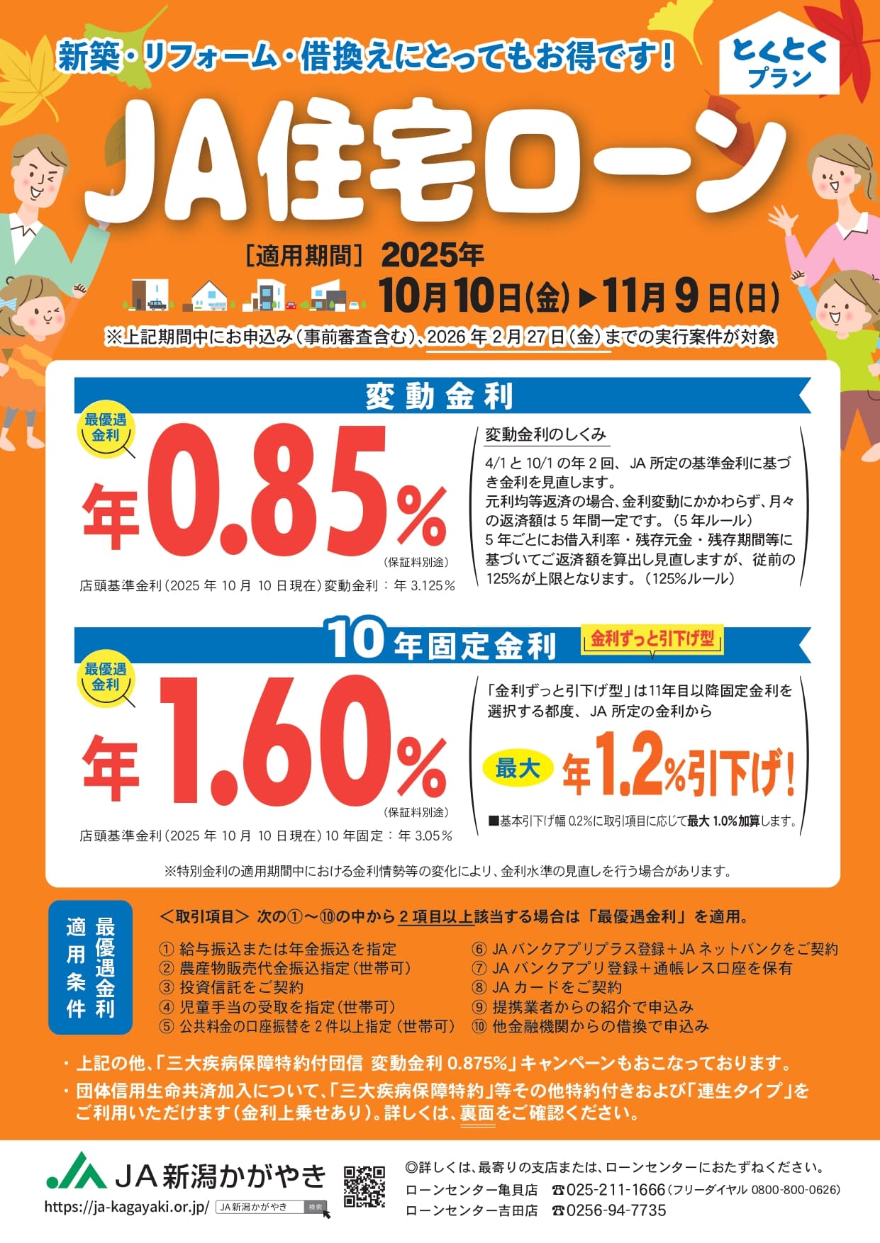 JA住宅ローンとくとくプランを更新しました(令和7年10月10日~令和7年11月9日)
