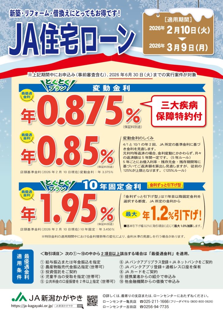 - 金利適用期間 令和8年2月10日~令和8年3月9日までに新規のお申込みをいただいた場合の適用金利です。※保証料が別途必要です。