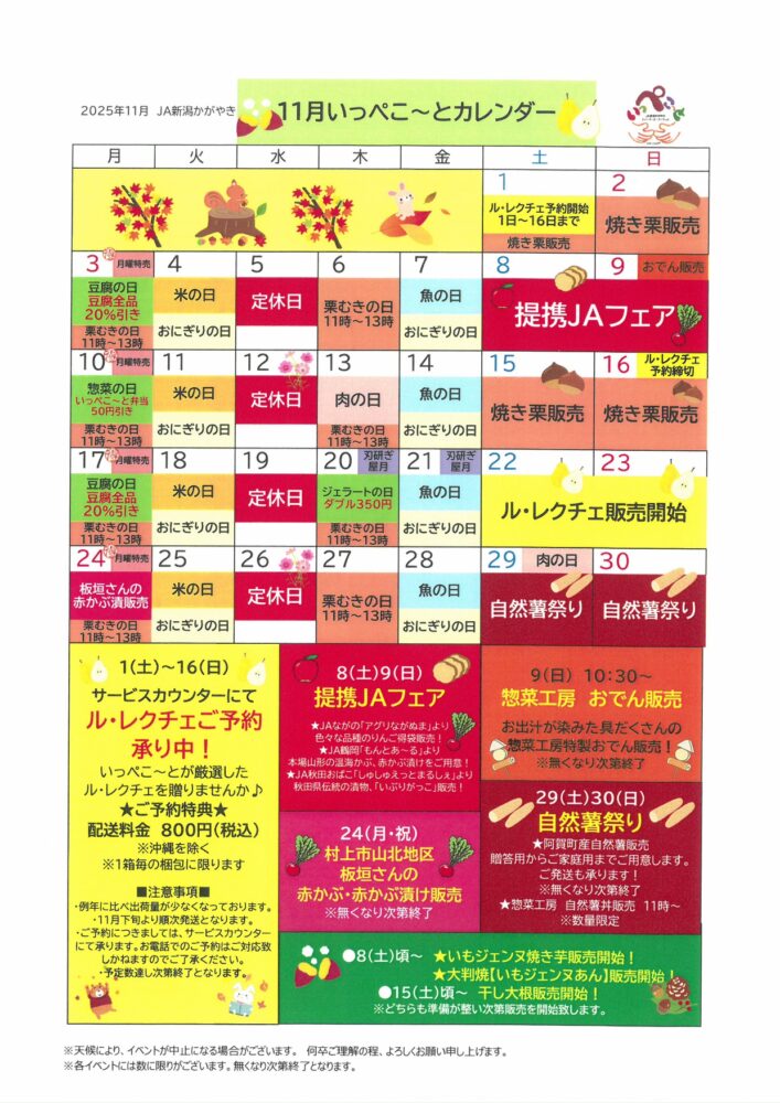 お知らせ 【11月】いっぺこ~と★月間スケジュール 2025年11月04日お知らせ 「ファーマーズ・マーケット いっぺこ~と」イベントスケジュールの月間スケジュールを更新しました。皆さまのご来店を心よりお待ちしています。 いっぺこ~とスケジュールpdf お問い合わせ先:ファーマーズ・マーケット いっぺこ~と 025-211-1831 « 前の記事へ 一覧