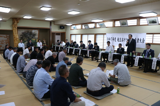 JA新潟かがやきは9月25日、出荷開始を目前に「越王おけさ柿生産者大会」を開催しました。生産者をはじめ、JA役職員、全農にいがた、市場関係者、行政関係者など約80人が出席しました。