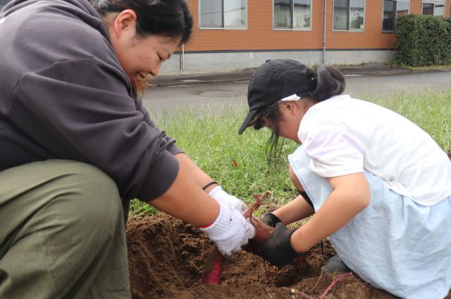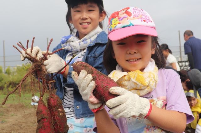 未来を担う子ども達に農業への理解促進を図り、新たな仲間づくり(地域応援団、JAファン)を進めるとともに、地域に根差した協同組合として地域の活性化に貢献することが目的。3年目の取り組みで、今年は親子13組26人がサツマイモの収穫などを体験しました。