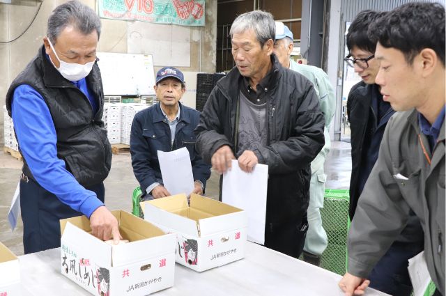 小柳専門部長は「毎年のことなので承知かと思うが、よりよい品物を出せるよう協力しよう」とあいさつ。市場関係者は「キノコ全般について、残暑の影響を受け荷動きが厳しいが、ようやく涼しくなってきたことで注文が多くなってきた」と市場情勢について生産者に伝えました。