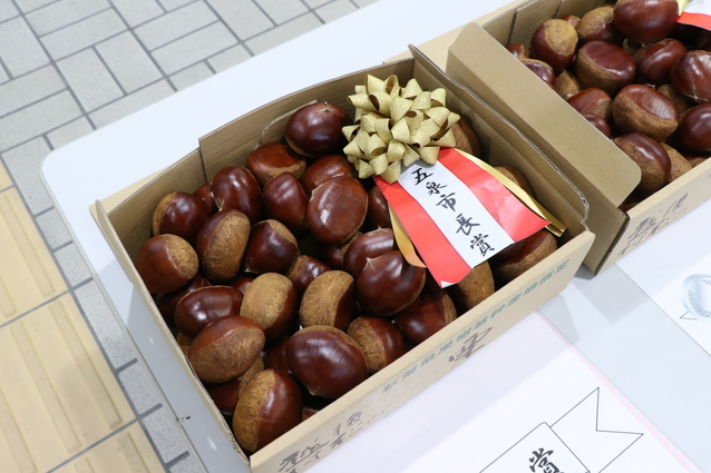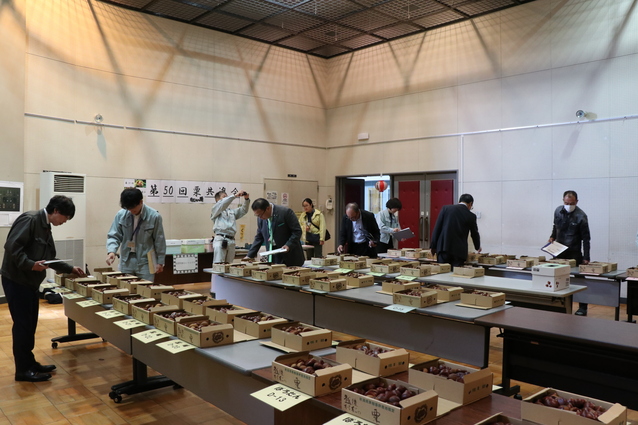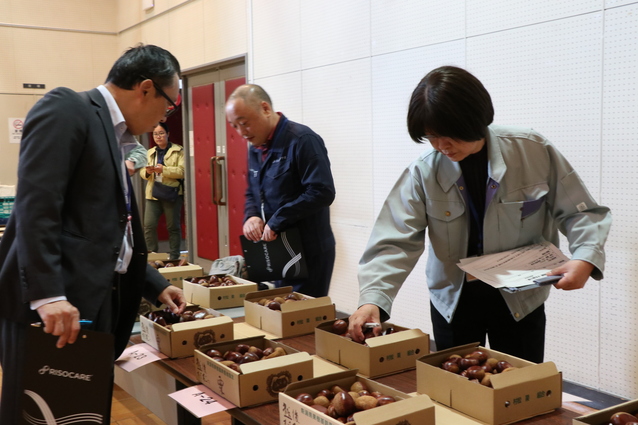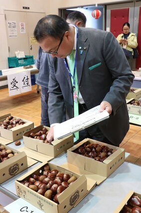 川瀬組合長は「今年は猛暑などの影響で収量は減っているが、大玉で品質の良い栗が多い。生産者の日頃の管理・努力の賜物で、今年は過去最多の出品数で共進会を開催することができた」と話し、「村松栗は100年の歴史がある。今後もブランド維持のために努めていきたい」と思いを語りました。
