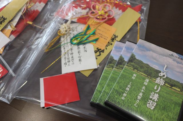 材料の配布は11月上旬から始まり、12月半ばまでに、輪飾り、玄関用、大、リースの4種類約3万8000個を目標に、同部会のメンバー約40人で手分けして制作します。パルシステム生協で予約注文販売する他、数量限定でささかみアグリセンターでも販売します。