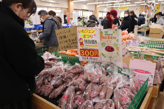 いもジェンヌ農商工連携協議会は、12月13日・14日に新潟市西区にあるJA新潟かがやき農産物直売所「ファーマーズ・マーケット いっぺこ~と」を会場に、「いもジェンヌまつり2025」を開催しました。同協議会は、JA新潟かがやきと同JAかんしょ部会、新潟市西区農政商工課、地元商工会で構成しています。