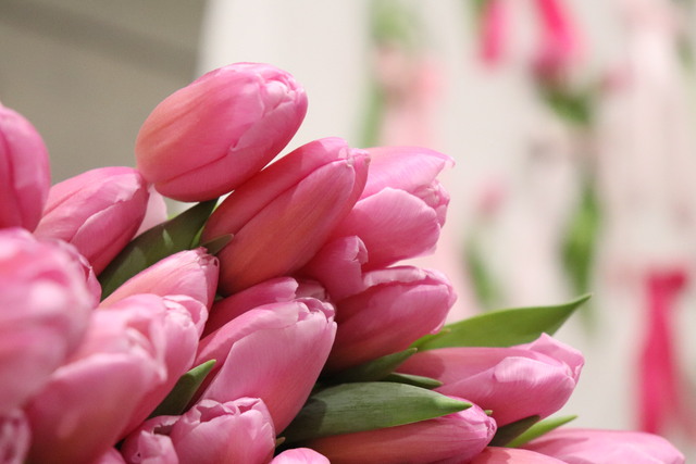 用意したチューリップは、県内出荷量の約6割を占める一大産地である新潟市南区白根地区で栽培されたジャンボピンクという品種です。