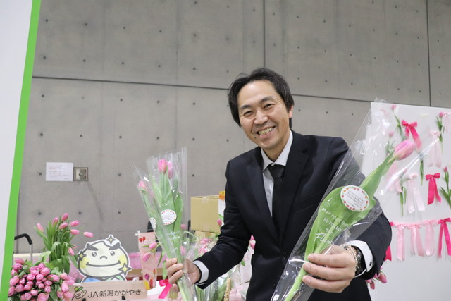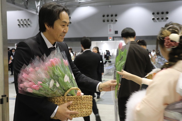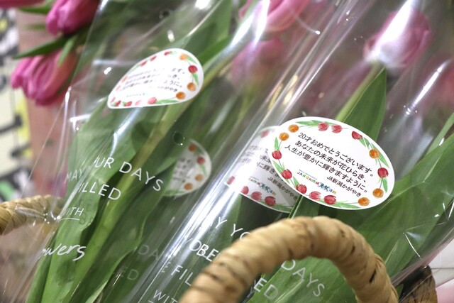 JA新潟かがやきは、1月11日に新潟市中央区朱鷺メッセで開催された「二十歳のつどい」で参加者にチューリップを贈呈しました。